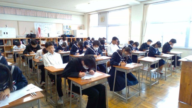 生徒たちはこれまでの学びを思い出し、真剣に取り組んでいます。