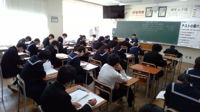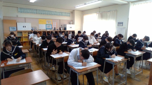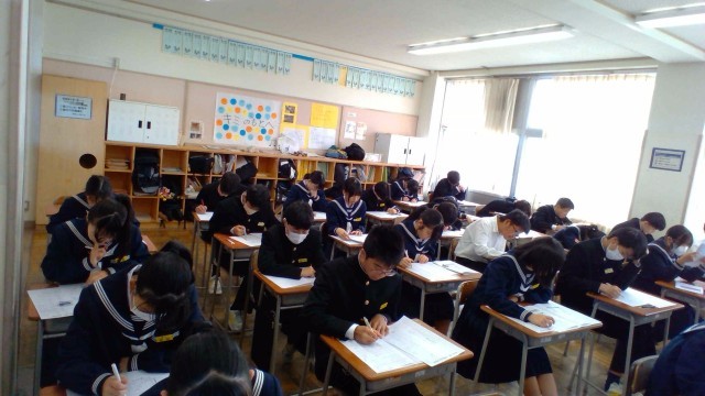 2年・2学期末考査・3日目 公開日 2025/11/27 更新日 2025/11/27 2学年 11月27日(木) 1限 2学期末考査の最終日です。2年生は理科の試験を受けています。2学期の学びの集大成です。最後まであきらめずに頑張っています。 (写真 上から2年1組~2年5組) +2