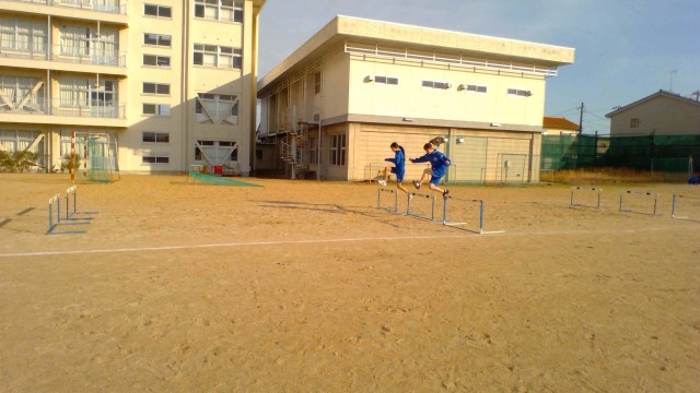 2年・体育・ハードル走 公開日 2025/12/02 更新日 2025/12/02 2学年 12月2日(火) 1限 2年4組の体育では、ハードル走に取り組んでいます。生徒たちは、「ハードルの間を走るときに歩幅を合わせるのが難しい」と言いながら、工夫して練習していました。何度も計測に挑戦する生徒もいました。