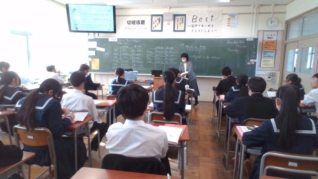 (写真 4枚目:2年4組 英語「比較級と最上級」)
