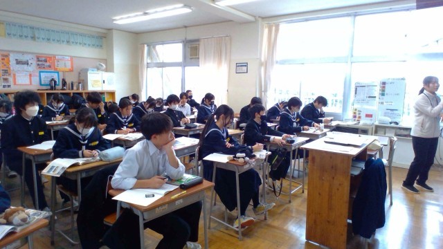 2年・授業風景 公開日 2025/12/05 更新日 2025/12/05 2学年 12月5日(金) 4限 2年生の授業の様子です。期末考査が終わり、新しい学習項目に入っている教科も多いです。生徒たちは先生の話を集中して聴き、理解を深めています。 (写真 上:2年2組 国語「徒然草」)(写真 中:2年3組 社会「中京工業地帯」)(写真 下:2年5組 英語「比較級」)
