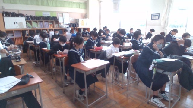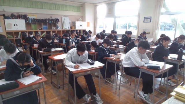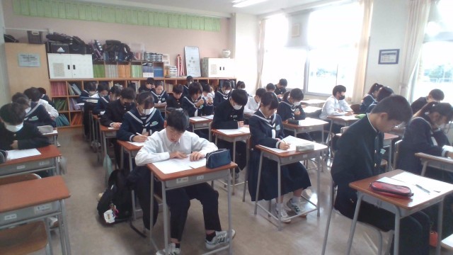 人権作文朗読 公開日 2025/12/08 更新日 2025/12/08 生徒会活動 12月8日(月) 8:30 今週は、校内人権週間となります。朝の時間に、人権作文が朗読され、生徒は感想を記入します。人権について深く考え、山中生の言動が「考動」、「幸動」につながっていくことを願います。(写真 1、2枚目:生徒による人権作文放送)(写真 3枚目から:1年1組~1年5組「放送を聴く様子」) +4