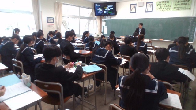 1年・授業風景 公開日 2025/12/10 更新日 2025/12/10 1学年 12月10日(水) 4限 1年生は、授業の準備を確実に行い、集中して授業に臨んでいます。(写真 上:1年2組 数学「図形の移動」)(写真 中:1年3組 国語「書初練習」)(写真 下:1年5組 理科「凸レンズ」)