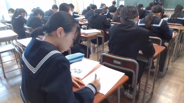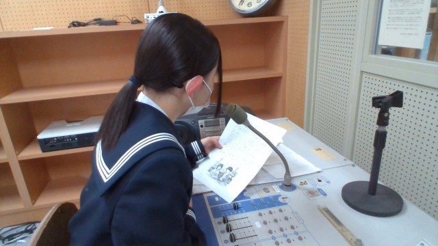 人権作文朗読 公開日 2025/12/12 更新日 2025/12/12 生徒会活動 12月12日(金) 8:40 人権作文朗読の最終日です。「同情ではなく共感を、そして協力を」との作文の朗読を聞き、感想をまとめています。静かな雰囲気の中、人権について考えるよい機会となっています。(写真 1枚目:人権作文を朗読する2年生)(写真 2枚目~4枚目:1年5組、2年5組、3年5組) +1