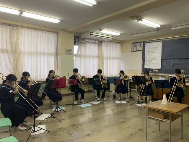 12月14日(日)の部活動・その1 公開日 2025/12/14 更新日 2025/12/14 部活動 12月14日(日) 9:15 吹奏楽部は、北部中、八尾中とアンサンブルコンテストに向けた合同練習会を行なっています。パートごとに基礎練習をし、練習終わりには各チームによるアンサンブルを披露する予定です。 +3