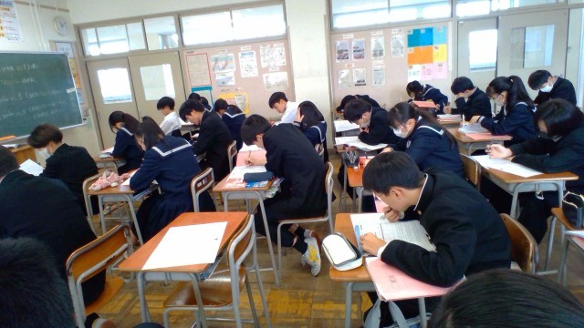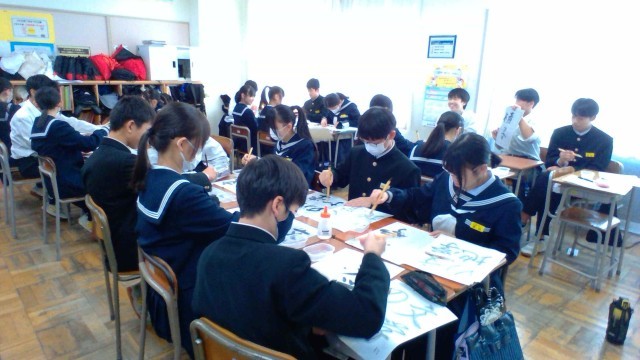 2年・授業風景 公開日 2025/12/16 更新日 2025/12/16 2学年 12月16日(火) 3限 2年生の授業の様子です。寒さに負けず、どの授業も集中して臨んでいました。 (写真 上:2年1組 社会「開国と幕府の終わり」)(写真 中:2年2組 英語「比較級・最上級」)(写真 下:2年4組 国語「書初練習」)