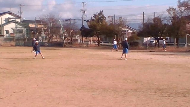 グラウンドでは、野球部がバントの練習をしています。