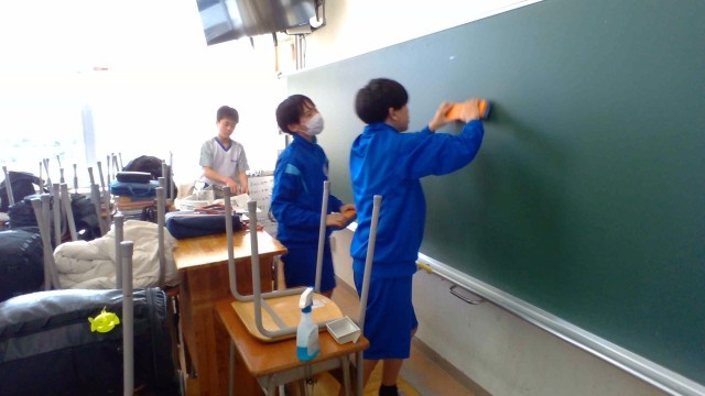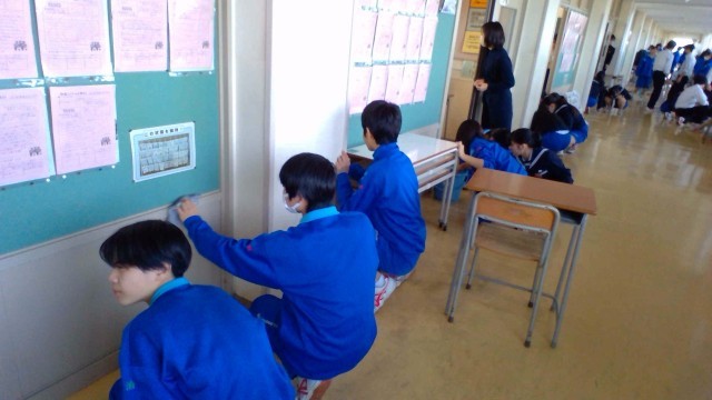 クリーンアップ大作戦 公開日 2025/12/23 更新日 2025/12/23 山室中学校のページ 12月23日(火) 5限 2学期の大清掃は「山中クリーンアップ大作戦」と称し、環境委員長の放送による指示のもと行っています。普段掃除する場所だけでなく、窓やドアレール、廊下の細かい汚れ等にも目を配り、隅々まできれいにしています。 +5