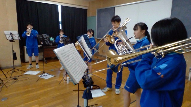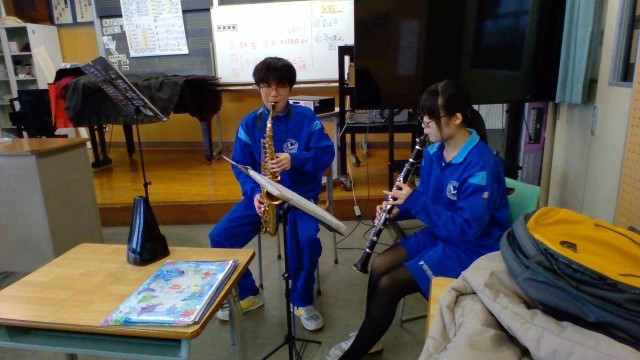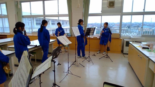 12月25日(木)の部活動・その3 公開日 2025/12/25 更新日 2025/12/25 部活動 12月25日(木) 11:30 吹奏楽部の活動です。お互いの音を聴き、アドバイスをし合って練習に励んでいます。