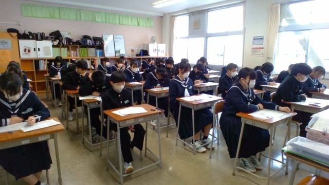1年・冬休み明けテスト 公開日 2026/01/09 更新日 2026/01/09 1学年 1月9日(金) 1限 1年生は、冬休み明けテストを実施しています。今日は英語です。問題を解き終わっても、最後まで見直しをする姿がありました。(写真 1~5枚目:1年1~5組) +2