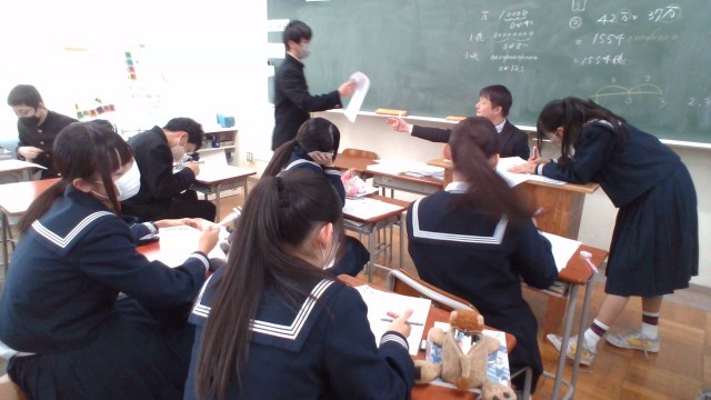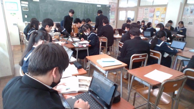2年・授業風景 公開日 2026/01/14 更新日 2026/01/14 2学年 1月14日(水) 4限 2年生は、単元のまとめを行うなど、復習に力を入れて授業が展開していました。(写真 上:2年1組 英語「受け身」)(写真 中:2年3組 数学少人数「復習」)(写真 下:2年5組 国語「最後の晩餐」)