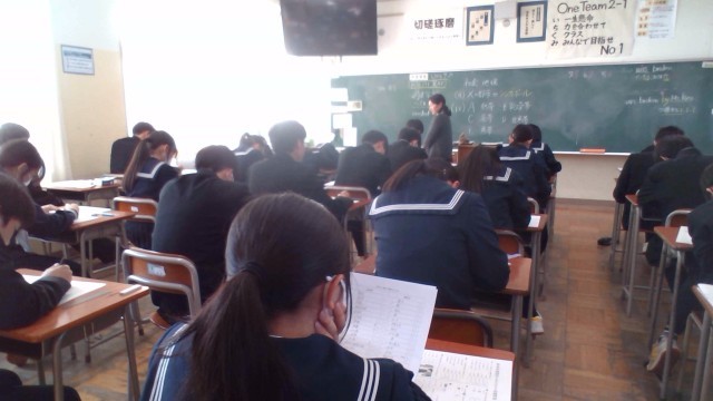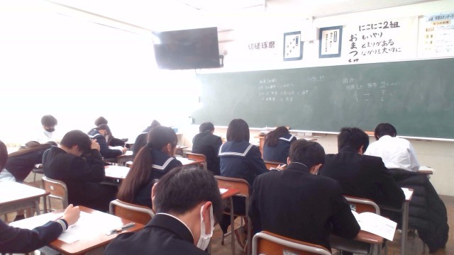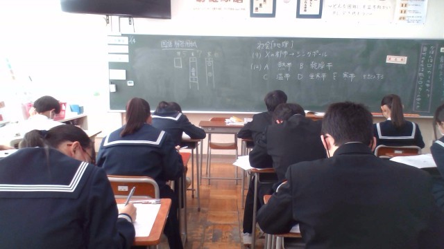 今日は国語と社会のテストです。受験を意識して、がんばれ、2年生!