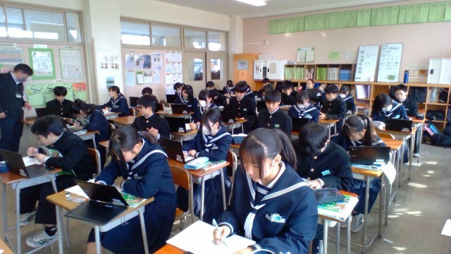 1年・社会・北アメリカ州 公開日 2026/01/16 更新日 2026/01/16 1学年 1月16日(金) 2限 1年2組の社会では、自由進度学習で学びを深めています。「シリコンバレー」「アグリビジネス」など北アメリカ州にまつわるキーワードをもとに、クロムブックを使って調べたり、ノートにまとめたりと、各々のやり方で学習していました。