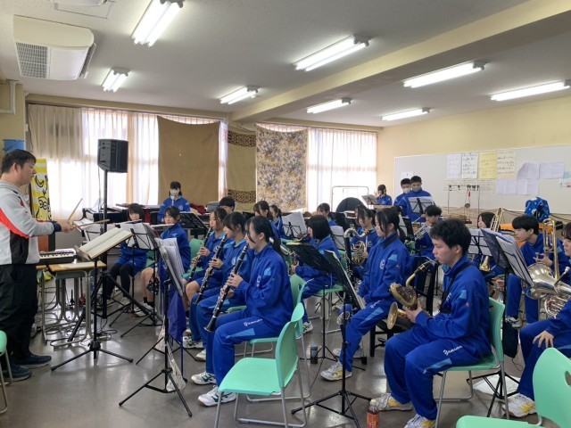 1月17日(土の部活動・その2) 公開日 2026/01/17 更新日 2026/01/17 部活動 1月17日(土) 10:30 吹奏楽部の様子です。アンサンブルコンテストの地区大会が終わり、いよいよ夏のコンクールに向けて本格的に練習が始まりました。