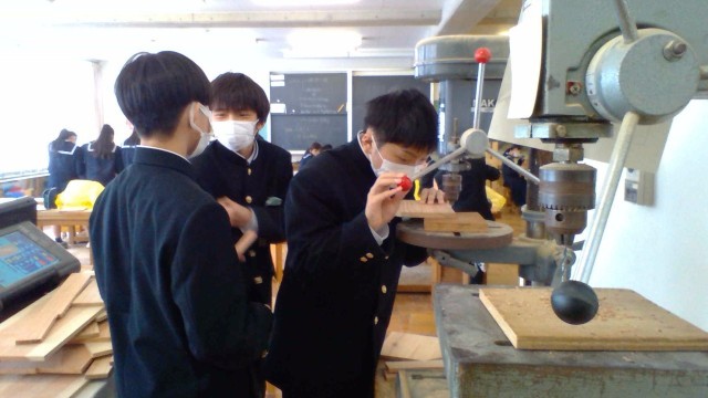 卓上ボール盤やベルトサンダーといった機器を用いるときは細心の注意を払い、声を掛け合って取り組んでいます。