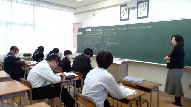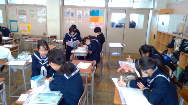2年・授業風景 公開日 2026/01/23 更新日 2026/01/23 2学年 1月23日(金) 3限 2年生の授業の様子です。声を掛け合い、和気あいあいとした雰囲気で学んでいます。 (写真 1,2枚目:2年2組 数学(少人数)「確率」)(写真 3枚目:2年3組 国語「君は『最後の晩餐』を知っているか」)(写真 4枚目:2年4組 英語「リーディングテスト」) +1