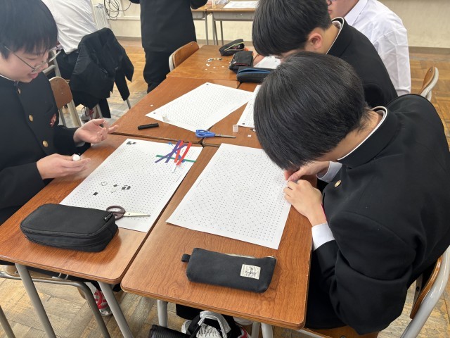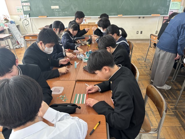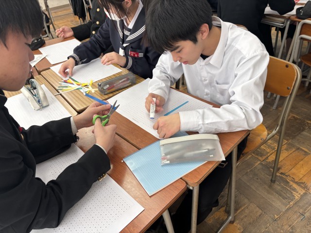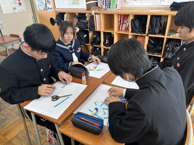 3年・総合 公開日 2026/01/23 更新日 2026/01/23 3学年 1月23日(金) 5限総合の時間に、卒業制作としてモザイクアートを作成しました。班で協力しながら、一つ一つのパーツを丁寧にハサミで切り、のりで貼り合わせる作業を行いました。「どんな作品が出来上がるか楽しみ」「卒業までもう少しだね」など、様々な声が聞こえてきました。(写真 上から1組、2組、3組、4組、5組) +7