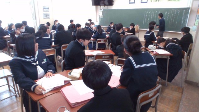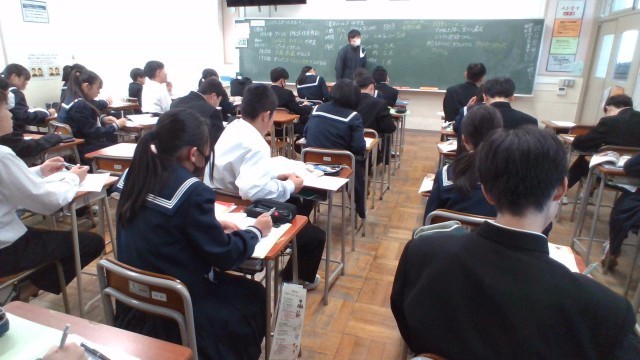 1年・授業風景 公開日 2026/01/26 更新日 2026/01/26 1学年 1月26日(月) 6限 たくさん雪が降った月曜日ですが、1年生は、6限まで落ち着いて学習しています。全クラス、教室での授業でした。(写真 1枚目:1年1組 理科「火山について」)(写真 2枚目:1年2組 英語「Unit9」)(写真 3枚目:1年3組 保健体育「バスケットボール」)(写真 4枚目:1年4組 数学「おうぎ形」)(写真 5枚目:1年5組 国語「少年の日の思い出」) +2