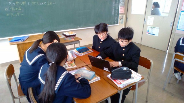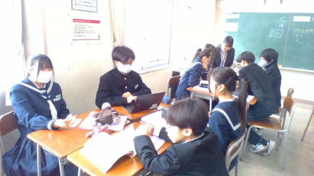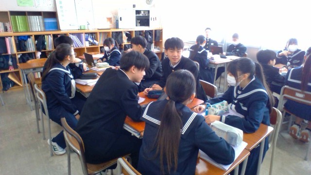 1年・家庭科・五感が喜ぶハンバーグを作ろう 公開日 2026/01/30 更新日 2026/01/30 1学年 1月30日(金) 1限 1年2組の家庭科では、調理実習の準備をしています。実習では、ハンバーグや添え野菜を作るそうです。調理する人や片づける人など、班に分かれて役割分担を話し合います。調理実習を楽しみにしている様子が伝わってきました。