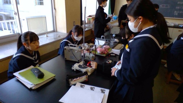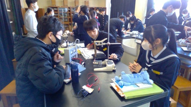 生徒たちは協力して装置を動かし、コイルの動きを注意深く観察していました。