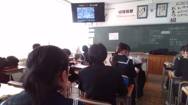 2年・総合・平和学習 公開日 2026/02/12 更新日 2026/02/10 2学年 2月10日(火) 6限 来年度の修学旅行に向けて平和学習を行いました。戦争による人々の生活への影響をそれぞれの担任の先生からの話や写真で学びました。また、毎年行われる納涼花火大会が富山大空襲の犠牲者を悼むためのものであることも話されました。戦争を起こさない平和な時代を生きるための大切な学習に結び付けてほしいです。