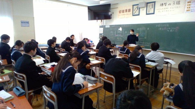 2年・授業風景 公開日 2026/02/13 更新日 2026/02/13 2学年 2月13日(金) 1限 2年生の授業の様子です。学年末考査に向けて、これまでの復習を中心に取り組んでいます。 (写真 1,2枚目:2年1組 英語「Reading Test」)(写真 3枚目:2年3組 理科「電流と磁界」)(写真 4枚目:2年4組 国語「助動詞」) +1