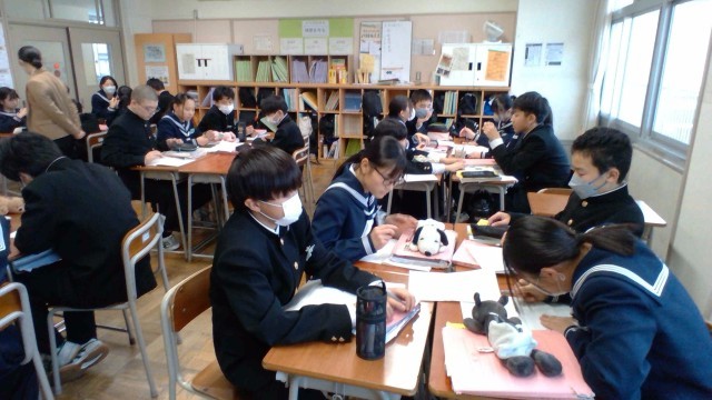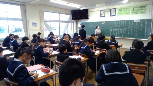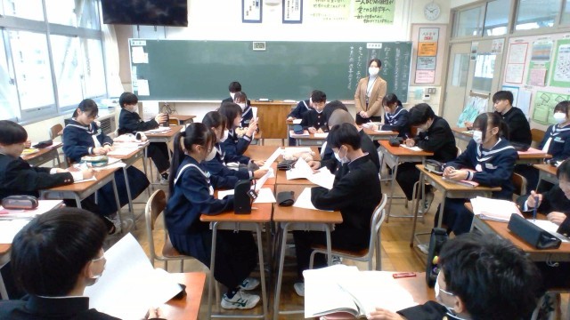1年・国語・「充実した話合いのために」 公開日 2026/02/17 更新日 2026/02/16 1学年 2月16日(月) 5限 1年4組の国語の授業です。「レクリエーションの内容を決める」というテーマを想定し、有志による話合いの寸劇を見て、「充実した話合い」とは何かを考えます。 「相手の意見を否定するだけでなく、理由も言うべきだと思う」「多数決で決めていたけど、反対意見をどうすればいいんだろう?」 一人一人が劇の中でよかった点・悪かった点について考え、意見を交わし合っていました。