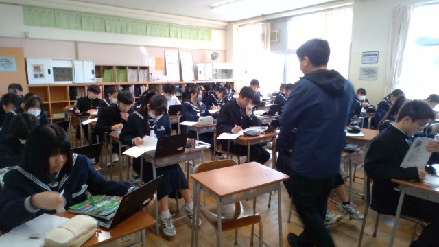 1年・社会・南アメリカ州 公開日 2026/02/24 更新日 2026/02/24 1学年 2月24日(火) 2限 1年5組の社会科では、自由進度学習で学びを進めています。「南アメリカ州はモノカルチャー経済を脱出できたのか?」というテーマで、地形や産業など様々な手がかりを探し、自分なりの答えを導きます。生徒たちは教科書やクロムブックを使い、思い思いの方法で考えを深めていました。