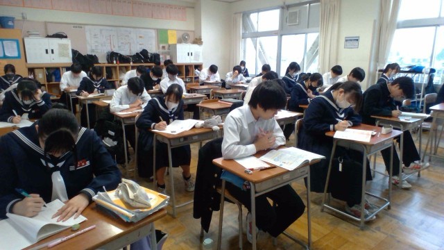 どのクラスも、集中して入試対策問題やワークに取り組んでいます。