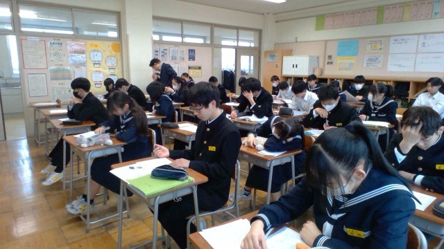 2年・授業風景 公開日 2026/03/03 更新日 2026/03/03 2学年 3月3日(火) 1限 2年生の授業の様子です。外は雨模様ですが、生徒たちは元気いっぱいに学習に向かっています。 (写真 上:2年2組 社会「北海道地方」)(写真 中:2年3組 理科「一年間の総復習」)(写真 下:2年5組 理科「一年間の総復習」)