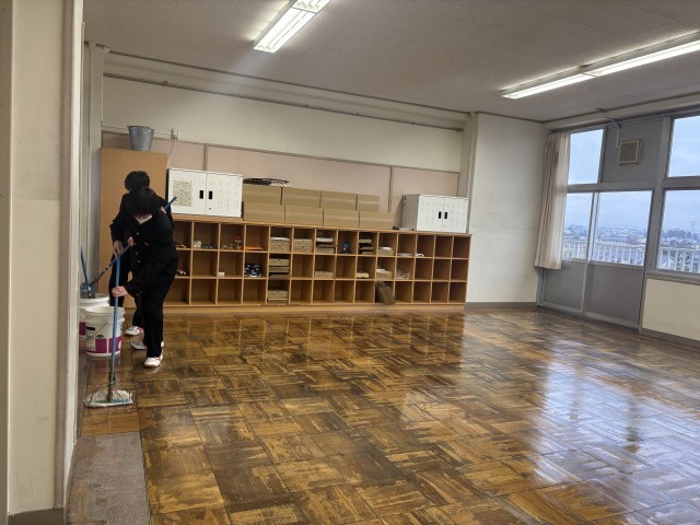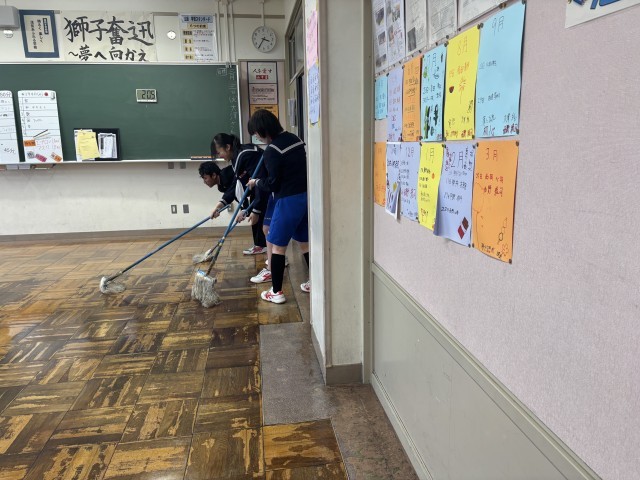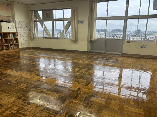 総合の時間に教室のワックス掛けを行いました。