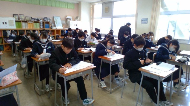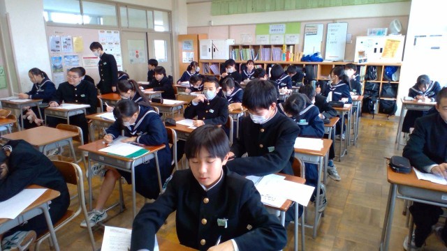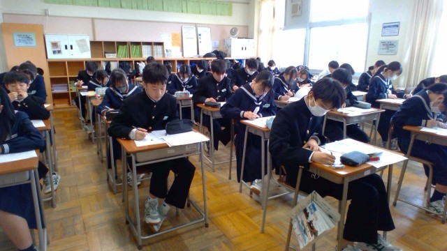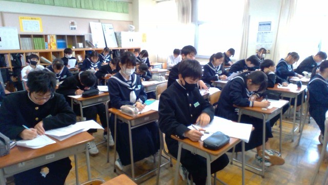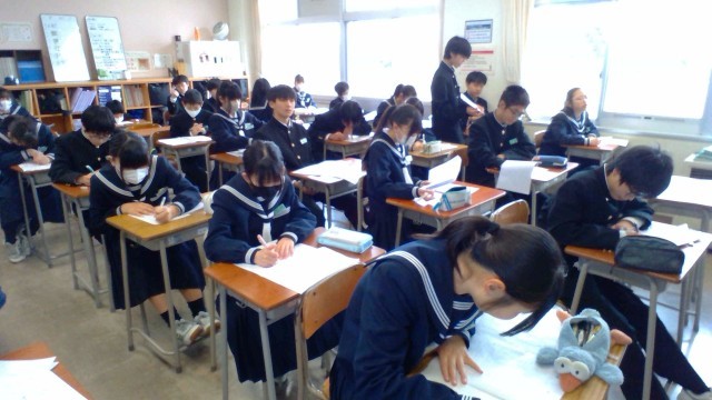 1年生は、午前中に行われた「13歳の発見」の事後学習をしています。