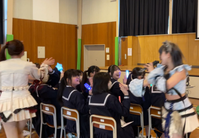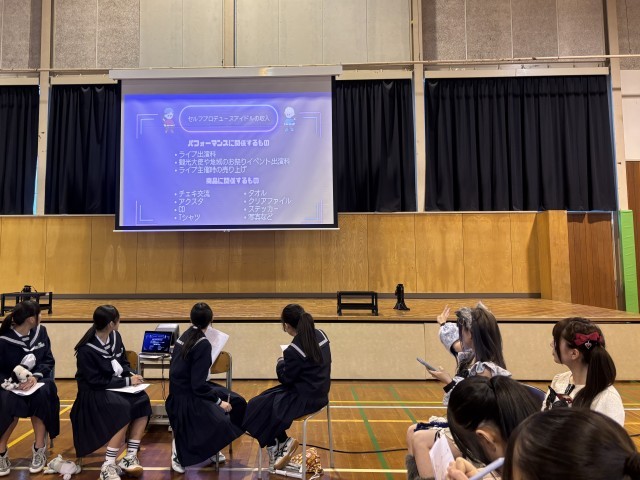 セルフプロデュースアイドルなどについて教えてもらい、曲を3曲披露してもらいました。生ライブが一番心に残りました。