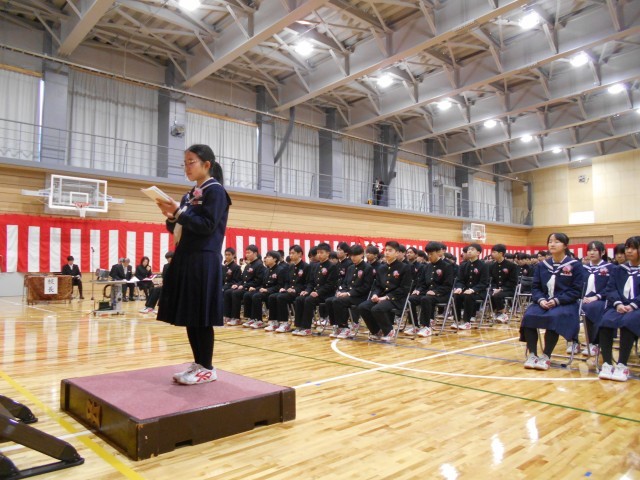 合唱コンクールで各クラスが心を一つにして歌った曲名が、文章の中に散りばめられており、感動とともに思い出を振り返る答辞となりました。