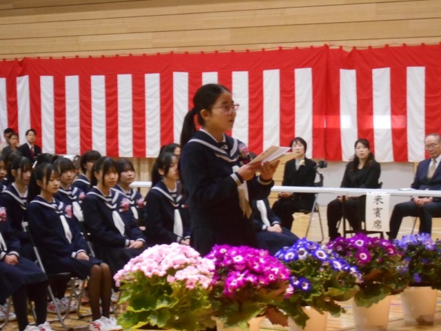 これまで学校生活を支えてくれた先生方や保護者の方々、一緒に成長してきた仲間へ感謝の言葉を伝えました。