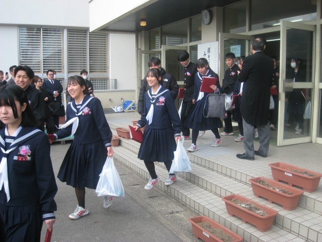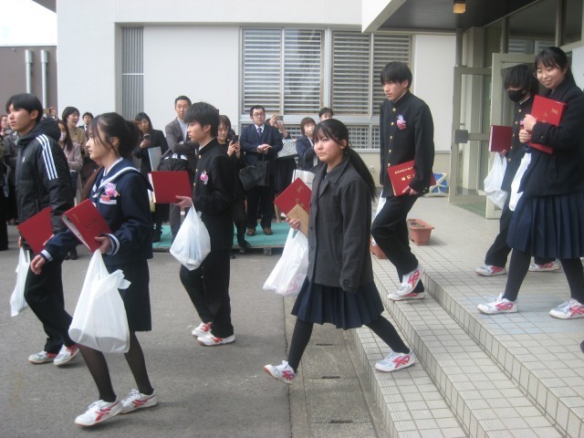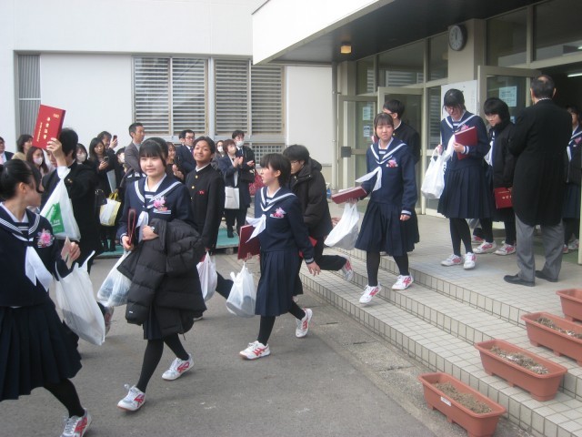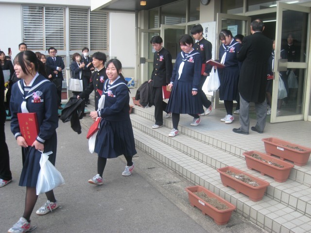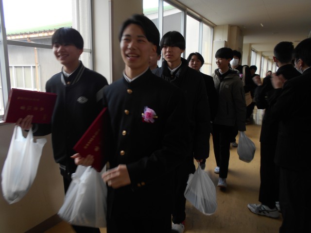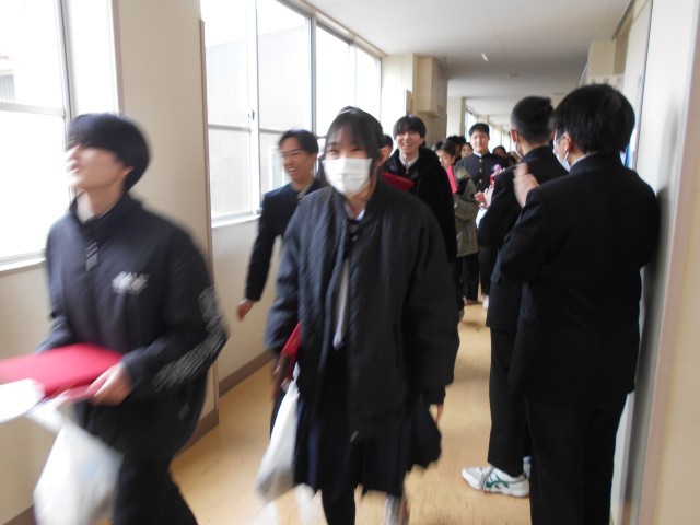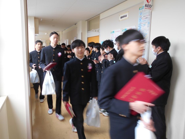第79回卒業証書授与式・その7 公開日 2026/03/12 更新日 2026/03/12 山室中学校のページ 3月12日(木) 12:00 卒業式後の歓送の様子です。在校生や教職員の拍手に送られて、卒業生が巣立っていきます。 卒業生の皆さん、ご卒業おめでとうございます。山室中学校での思い出を胸に、それぞれの進路で充実した歩みを進められることを祈っております。 卒業式にご来場いただいた保護者の皆様、ご来賓の皆様、厳粛な式典づくりへのご協力ありがとうございました。 +5