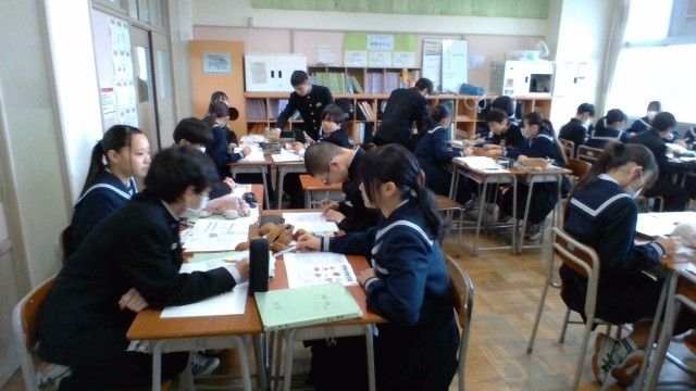 1年・授業風景 公開日 2026/03/16 更新日 2026/03/16 1学年 3月16日(月) 2限 1年生の授業の様子です。話合いをしたり、実際の資料を手に取ったりしながら、学びを深めています。 (写真 1枚目:1年3組 社会「オセアニア州」)(写真 2枚目:1年4組 理科「示準化石」)(写真 3,4枚目:1年5組 英語(少人数)「『○○が痛い』を言えるようになろう/Gon, the Fox」) +1