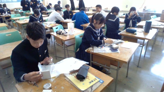 (写真 上:2年2組 美術「あんどん和紙ランプの製作」)