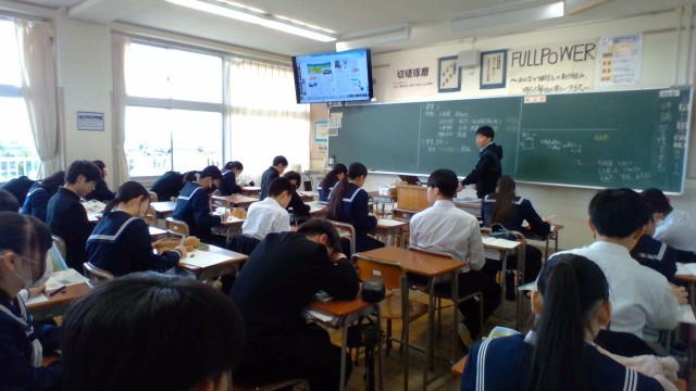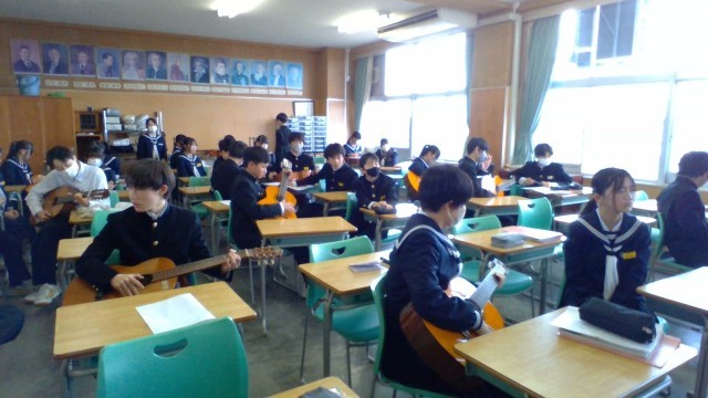 (写真 中:2年3組 音楽「ギターに親しもう」)