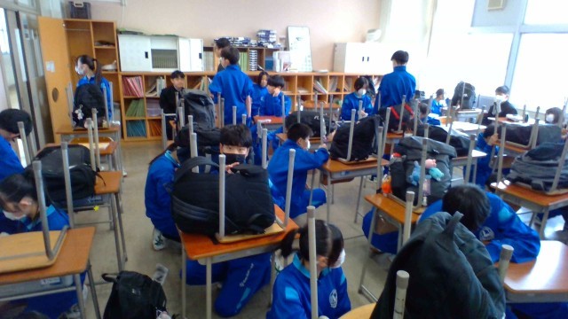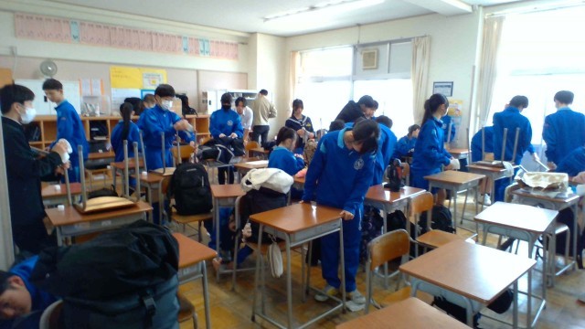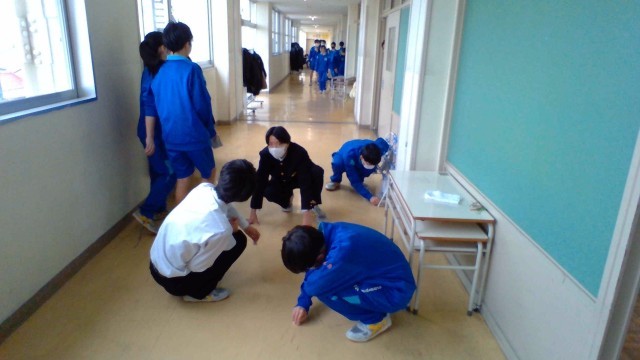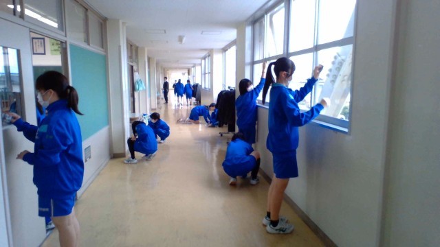 クリーンアップ大作戦 公開日 2026/03/18 更新日 2026/03/18 山室中学校のページ 3月18日(水) 5限 学年末の大清掃です。環境委員会の指揮のもと、机や椅子の脚、廊下の細かい汚れや窓など、隅々まできれいにします。次の学年の人達に気持ちよく使ってもらえるよう、協力して作業に取り組んでいました。 +4