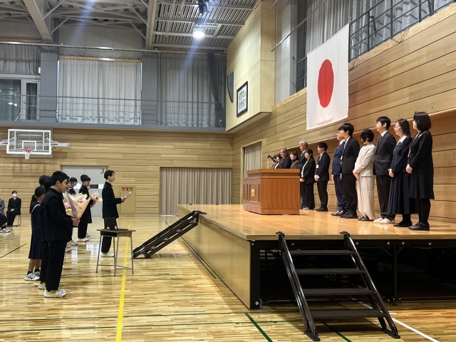 修了式後に、離任式、退任式が行われました。