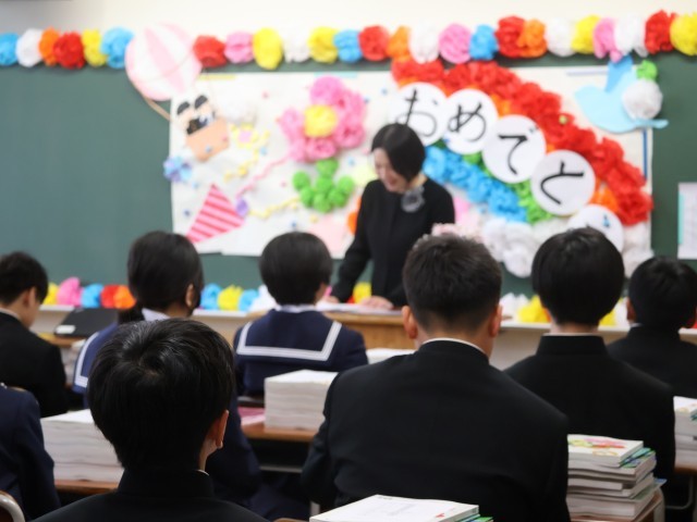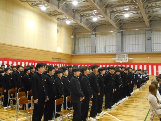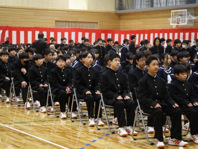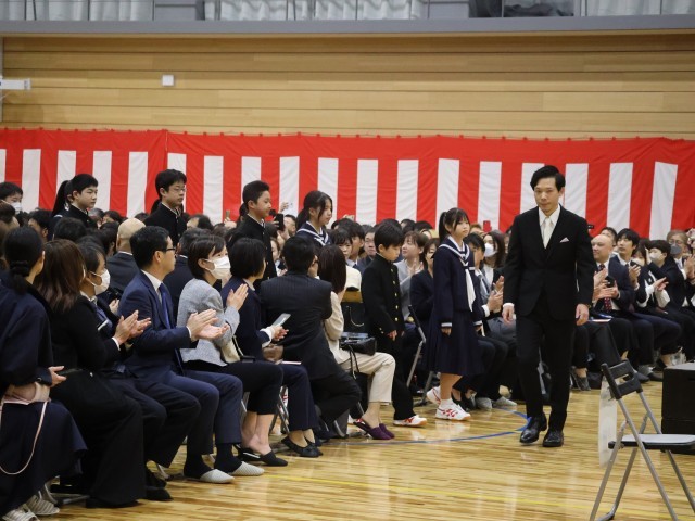 入学式では、在校生や教職員に拍手で迎えられ、真新しい制服に身を包んだ新入生が緊張した面持ちで入場しました。