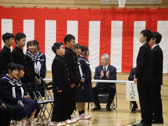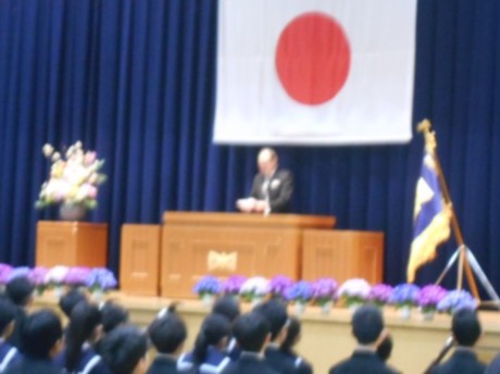 式辞では、校長先生が「山中愛」「考動」「幸動」についてお話ししました。「山中愛」は「愛をもって人と接する」こと。愛とは、自分から周りのすべての人に「思いやり」をもって接していこうとする働きかけのことです。「考動」は自ら考えて正しい行動をすること、「幸動」とはまわりの人や自分を「幸せ」にするための行動をするということです。