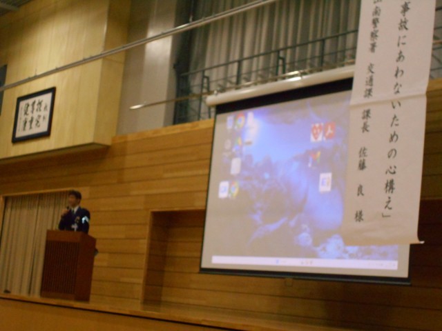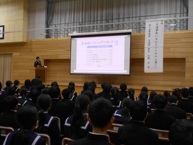 本校では、4月13の5限、富山南警察署 交通課から講師をお招きし、交通安全教室を行いました。