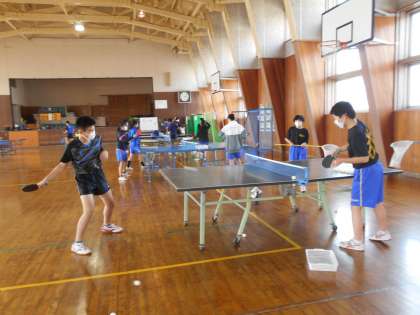 多球練習でフォームを確認します。1年生の球打ちの球拾いをしながら3年生が見守ります。