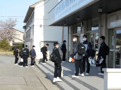 いよいよ新学期のスタートです。正門の桜もなんとか花を保って出迎えです。玄関前では久々に合う友達との会話を弾ませています。よいスタートの一日にしましょう!
