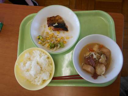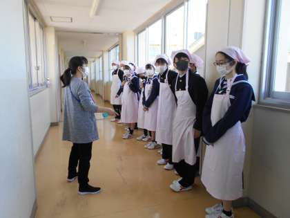 1学期初の給食です。手洗いタイムの後、新クラスでの給食当番が準備をしました。3年生はさすが、てきぱきと準備が早く、いただきますもスムーズでした。