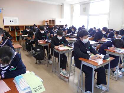 今日の1限の学活の時間に「3年生になって」の作文を書きました。どのクラスも静かに落ち着いた雰囲気で取り組んでおり、成長を感じました。