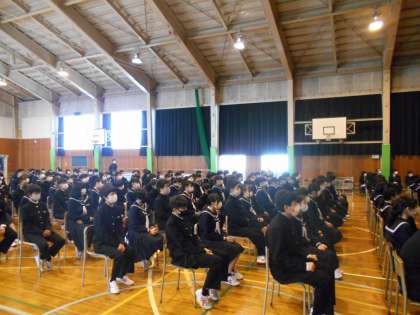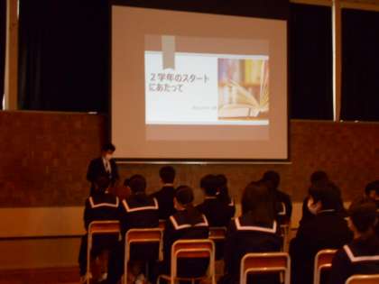 学年集会の様子です。今年度は「Dream」「Respect」「Contribution」の3つのキーワードを大切にしていこうと学年全体で確認しました。