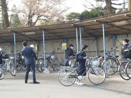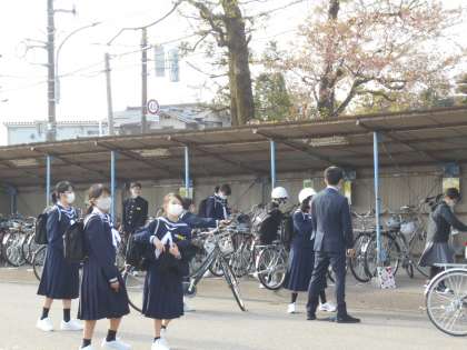 自転車通学生は自転車小屋に5台ずつきれいに並べて入れていますね。